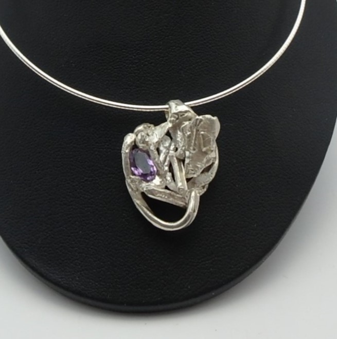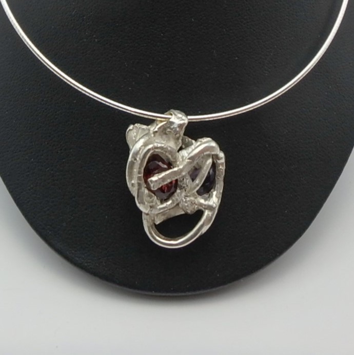 sterling silver and rhodolite garnet forged freeform pendant